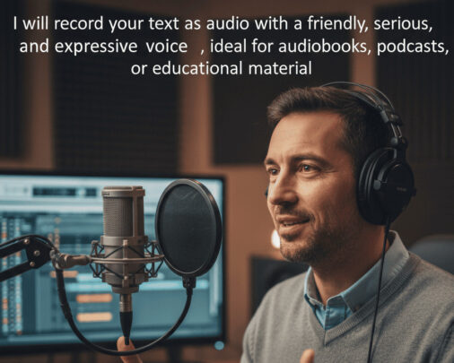 I'll record your text at audio in a friendly, serious, and expressive voice, ideal for audiobooks, podcasts, or educational materials.For audios of maximum 1 minute duration, the cost is $1, and a...