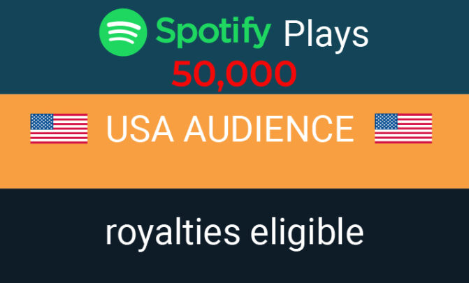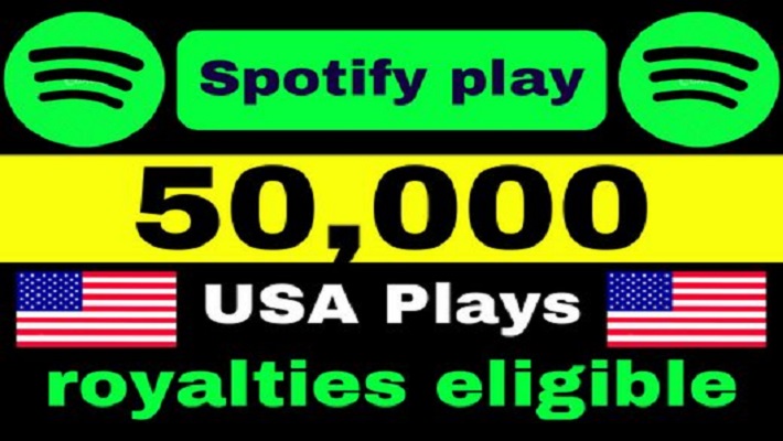 I will provide  50000 Spotify USA Plays from TIER 1 countries, Real and active users and Royalties Eligible permanent guaranteed🍀 Start: 2-24 Hours🍀 Speed: 7-10k/day🍀 Refill: Lifetime🍀 Best...