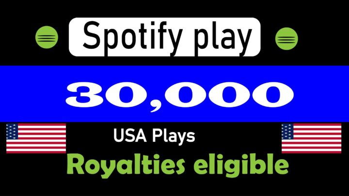 I will provide 30000 Spotify USA Plays from TIER 1 countries, Real and active users and Royalties Eligible permanent guaranteedStart: 1-24 Hours Speed: 7-10k/dayRefill: LifetimeBest...