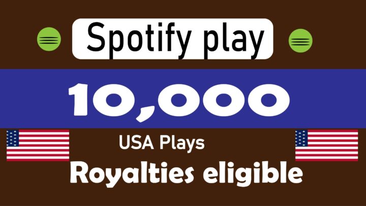 I will provide 10000 Spotify USA Plays from TIER 1 countries, Real and active users and Royalties Eligible permanent guaranteedStart: 1-24 Hours Speed: 7-10k/dayRefill: LifetimeBest Service in...