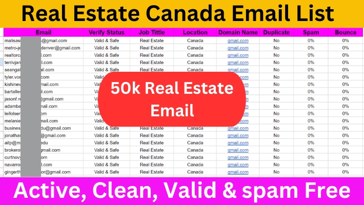 Hi,I will provide real estate agents, realtors' emails, and a contact list for marketing.Do you want more leads from real estate agents, realtors, and contact numbers to increase sales? Let me help...