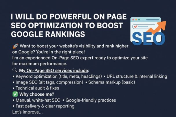 "I Will Do Powerful On Page SEO Optimization To Boost Google Rankings"🚀 Want to boost your website’s visibility and rank higher on Google? You’re in the right place!  I’m an experienced...