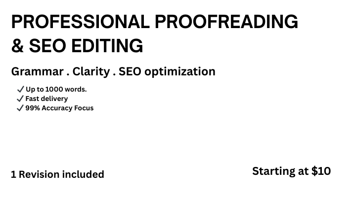 Are you looking for clean, polished, and professional content?I will carefully proofread and edit your document to improve grammar...