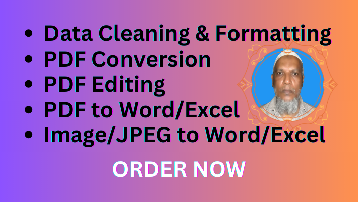 I will do Data Entry, PDF Conversion & Editing