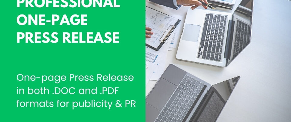 Professional one-page Press Release in standard format, prepared and sent to you in both .DOC and .PDF file formats, for you to us...