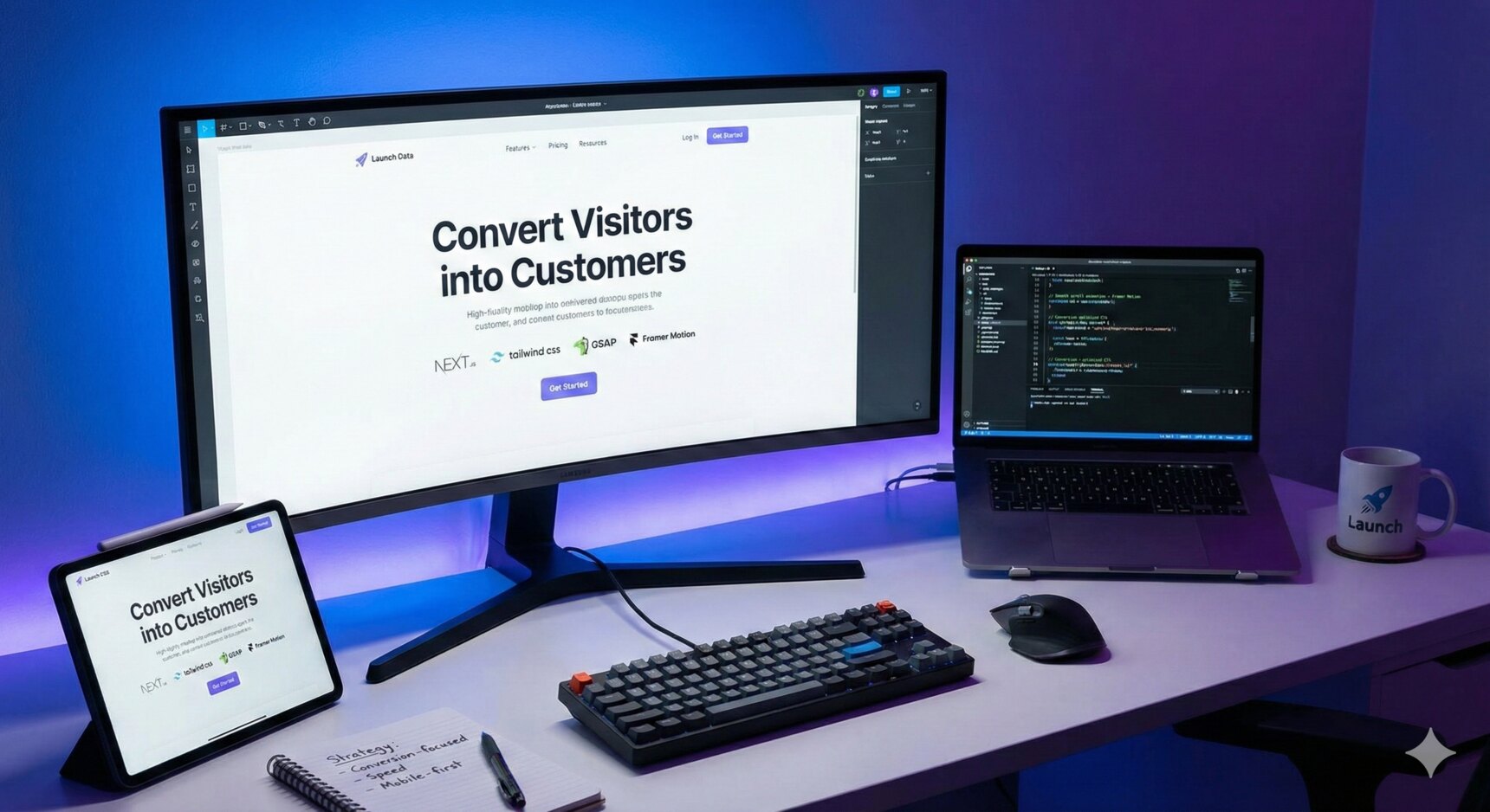 Frontend Developer, React, Next.js, Tailwind CSS, GSAP, Framer Motion, AntiGravity Pro, Web App, Landing Page, Modern UI, TypeScript, Dashboard, Responsive Design, Animation, Web Development.